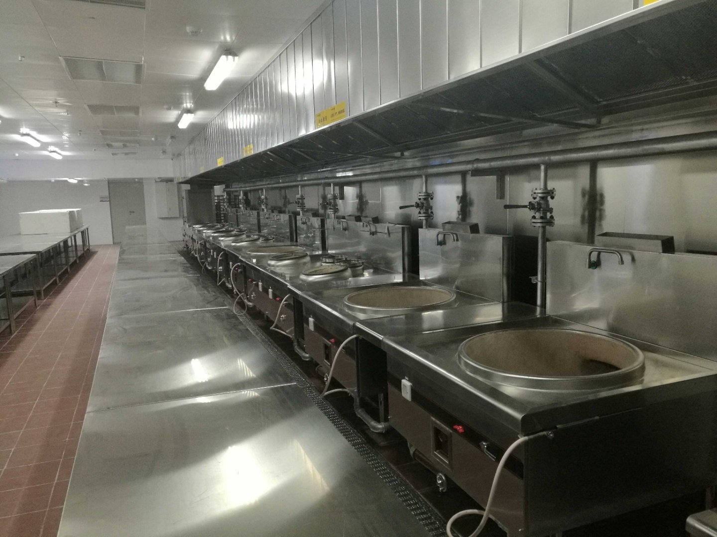 優先選擇不銹鋼廚房設備,滿足高強度使用需求;燃氣灶具需配置聯動式排煙系統,排風量≥設備發熱量1.2倍?